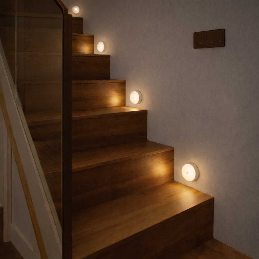 Dla osób starszych bezpieczeństwo to podstawa – lampka automatycznie oświetla drogę do łazienki czy kuchni w nocy, minimalizując ryzyko potknięcia.